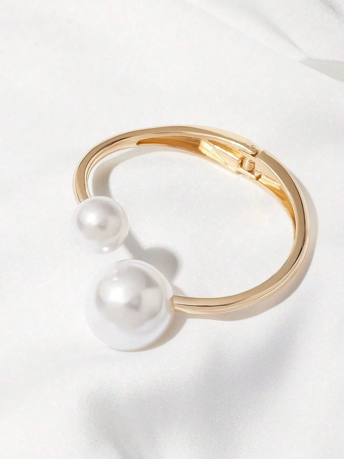 Elegant Asymmetrical Faux Pearl Cuff Bracelet