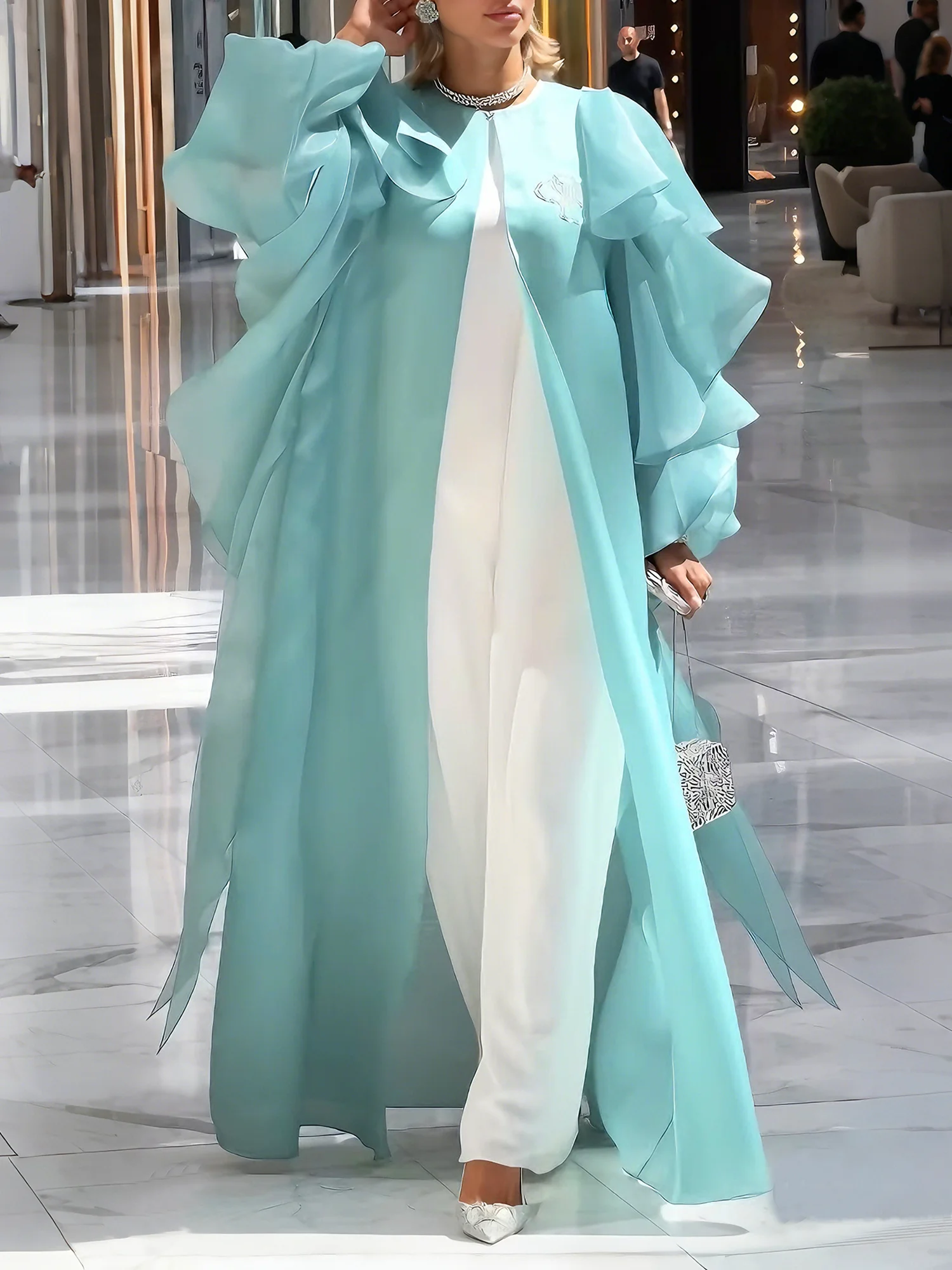 Elegant Balloon Sleeve Peplum Plain Crew Neck Kimono