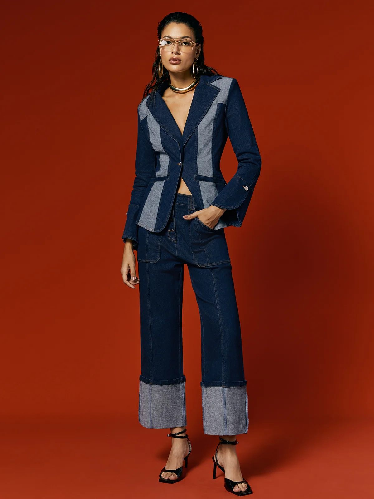 Step into fall with the Denim Coat, a statement piece that pairs perfectly with its matching jeans for a cohesive, fashion-forward look.