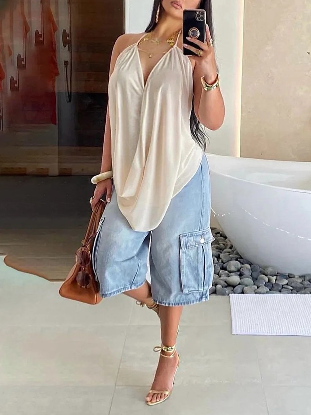 Stay effortlessly stylish with these relaxed-fit denim shorts, featuring utility-inspired side pockets. Designed for comfort and versatility, they’re the perfect lightweight staple for casual summer days and chic, everyday wear.