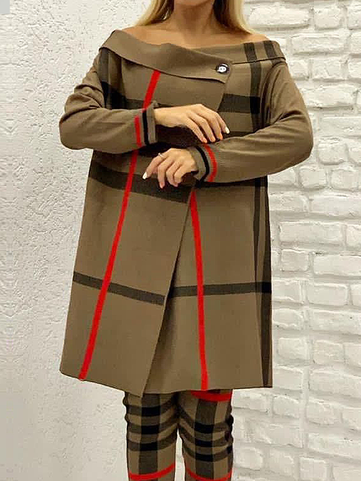 Loose Urban Off Shoulder Geometric Mid-long Sweater