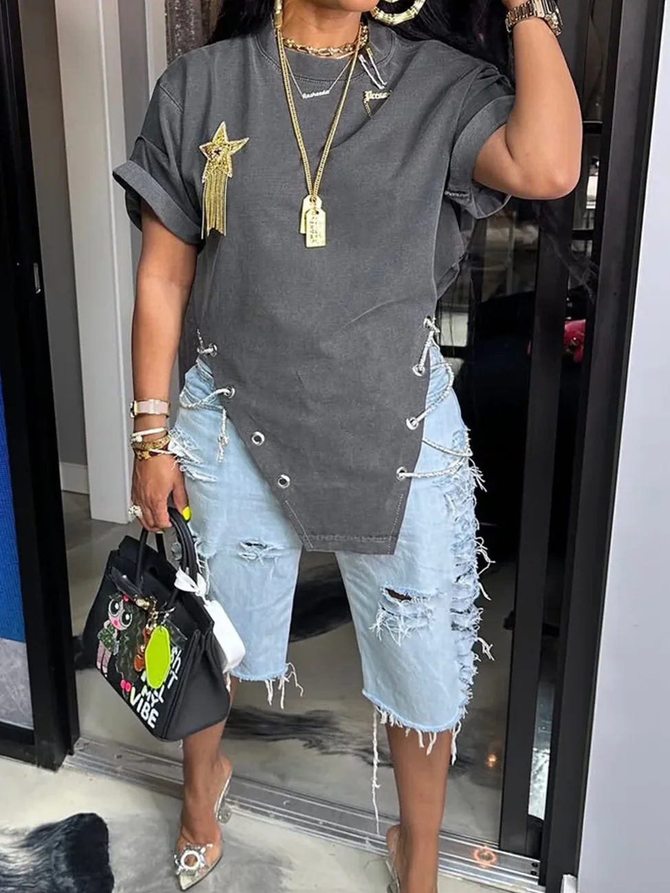 Your ultimate summer essential! These comfy, versatile distressed denim shorts offer a perfectly relaxed fit and subtle rips, making them ideal for everyday casual style.