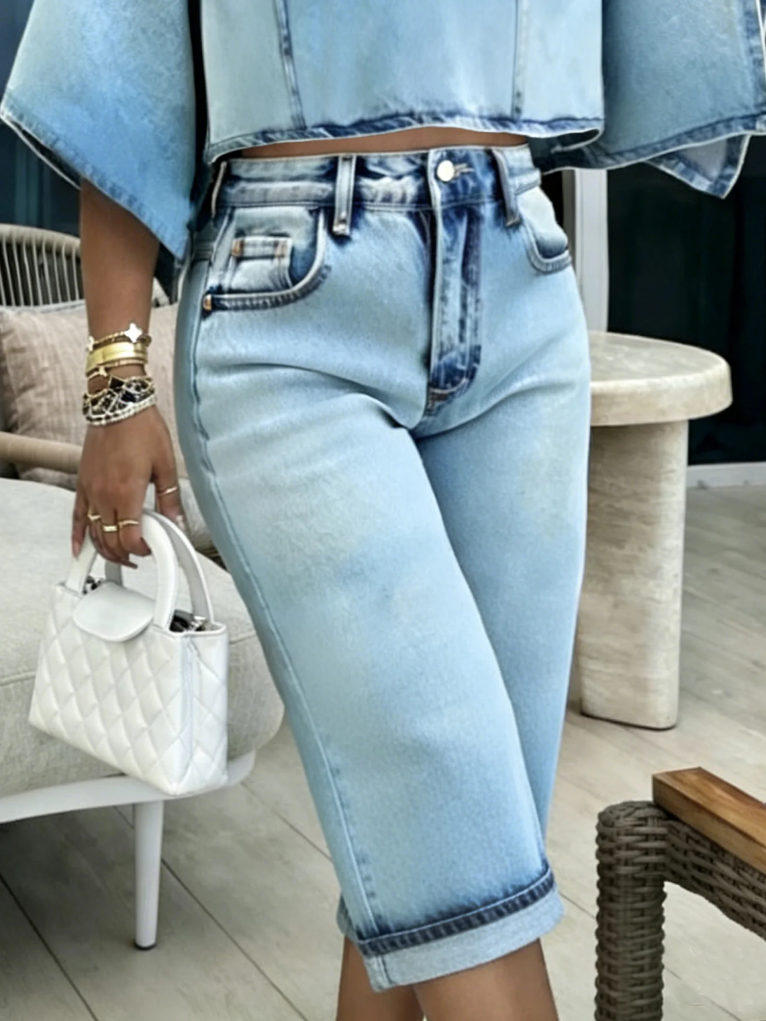 Plain Casual Denim Shorts