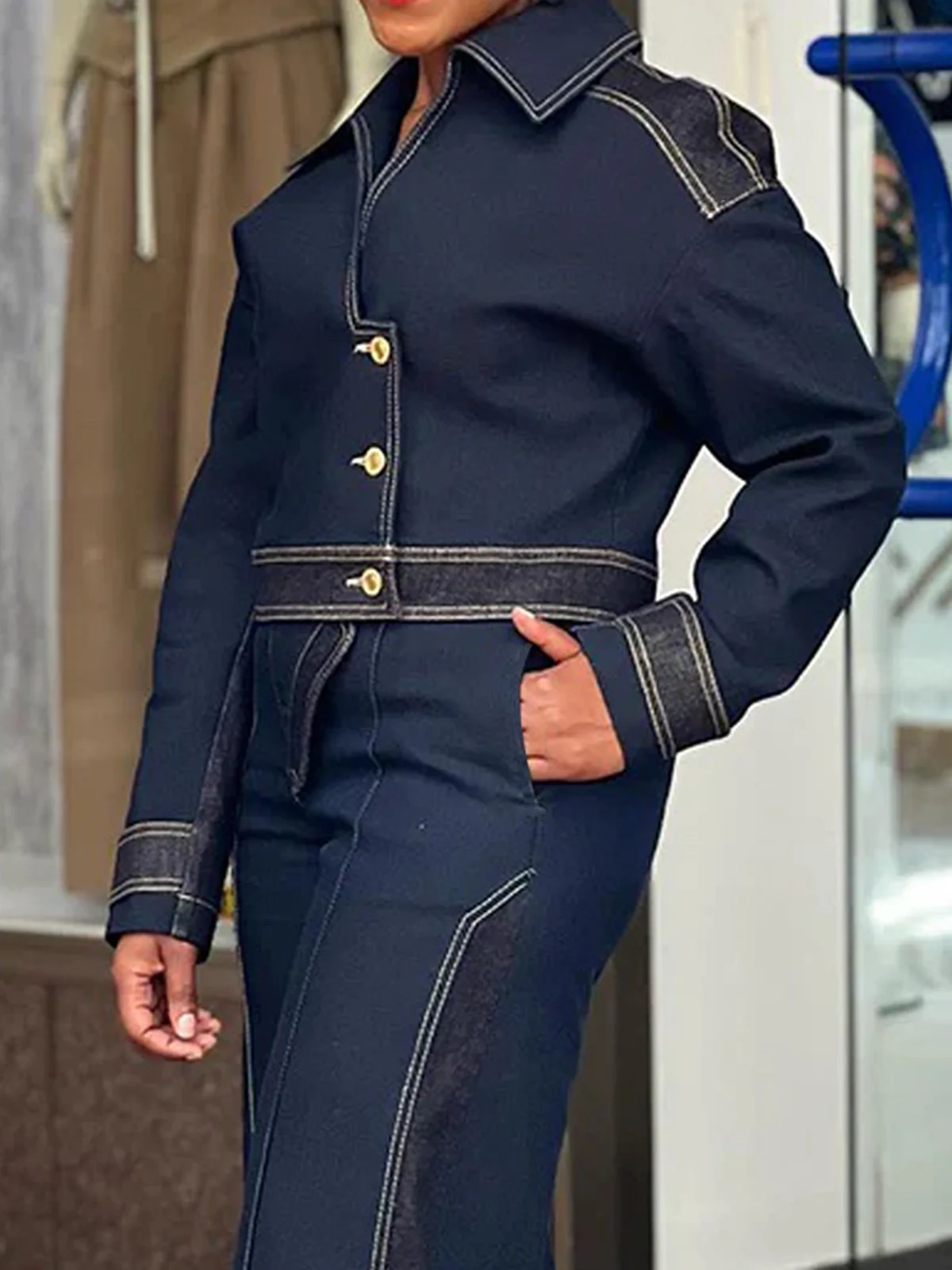 Regular Fit Urban Shirt Collar Long Sleeve Denim Jacket