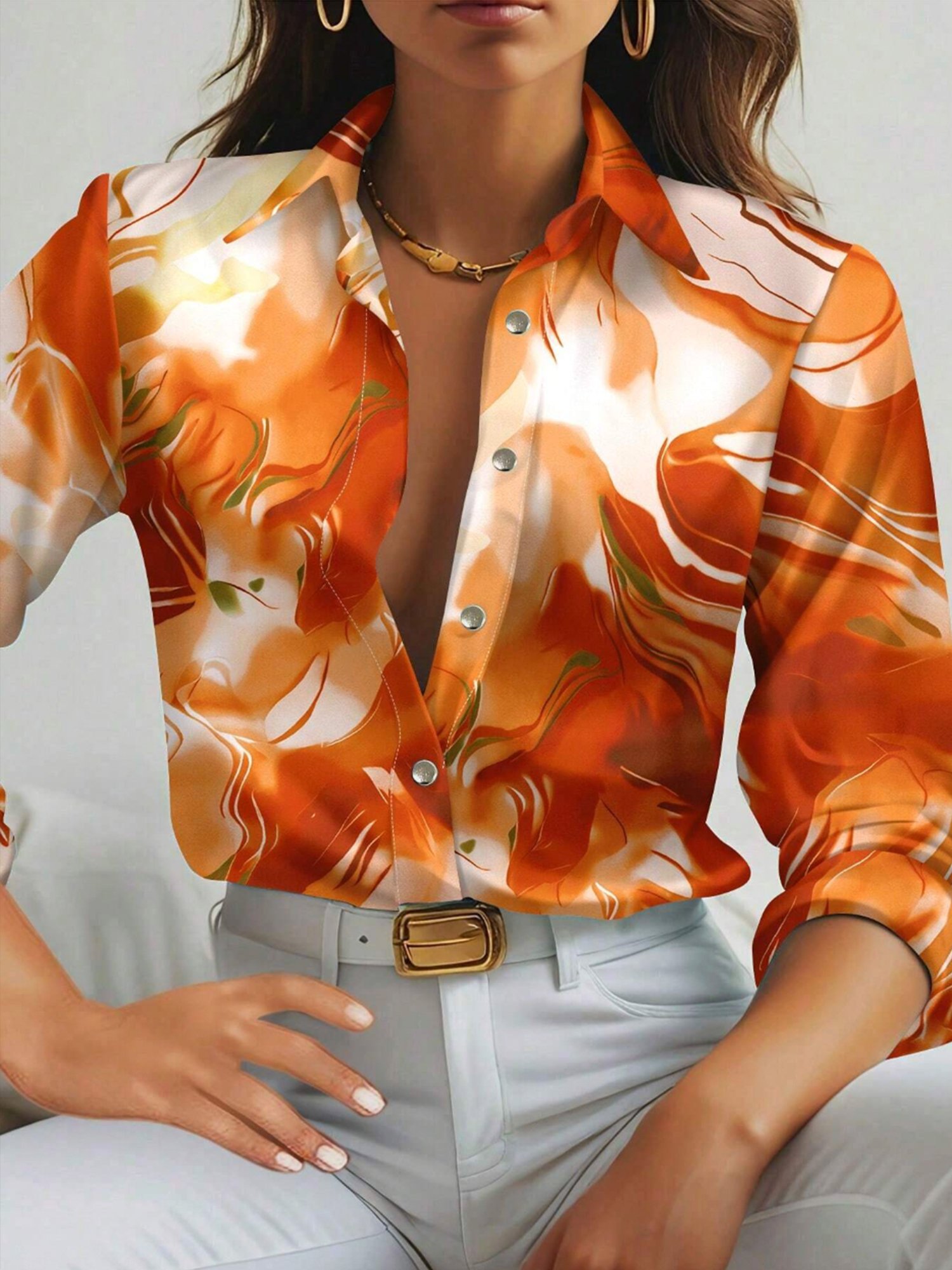 Urban Abstract Printing Shirt Collar Shirt