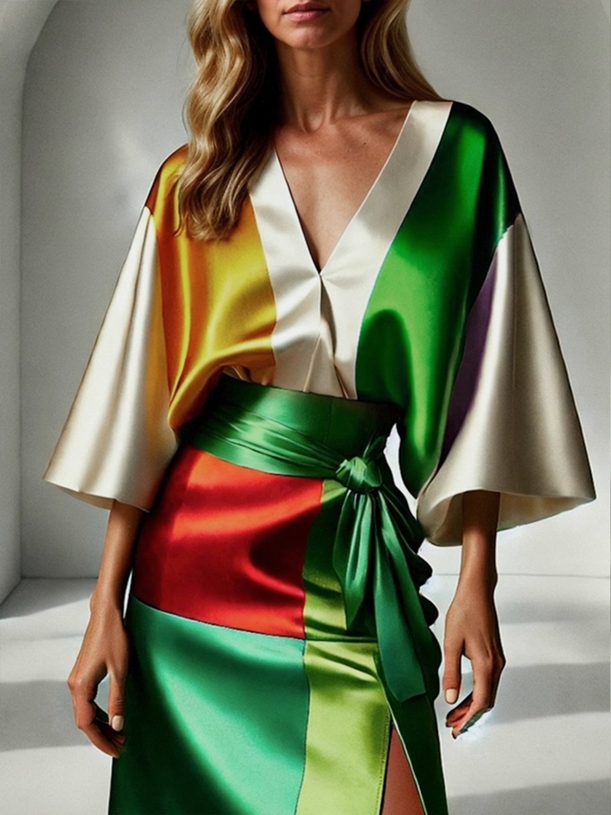 Urban Color Block V Neck Loosen Blouse
