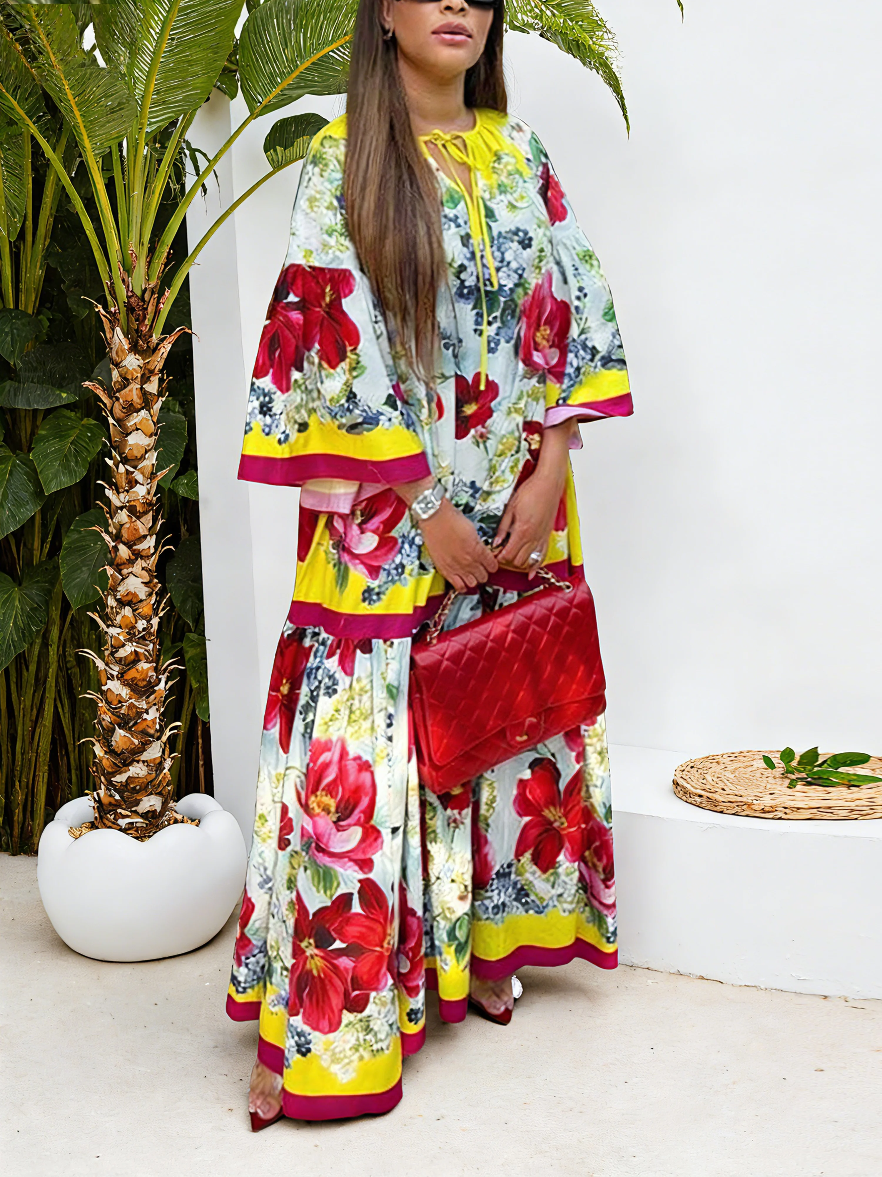Urban Floral Printing Crew Neck Maxi Dress