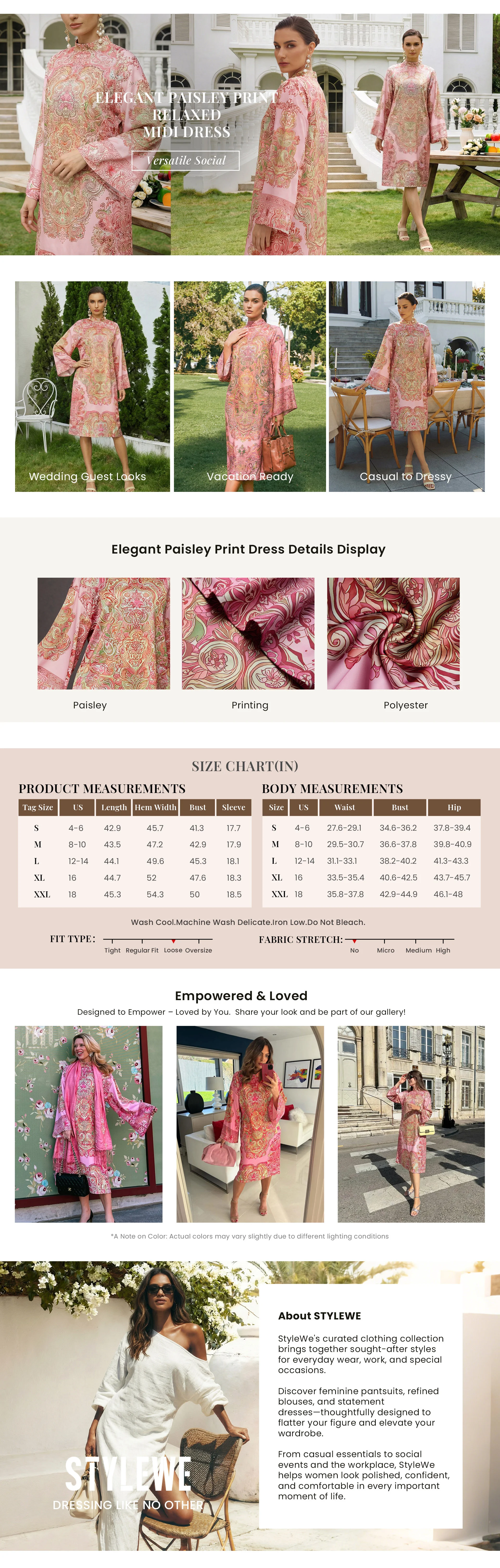 Featuring a unique paisley print, this relaxed-fit midi dress blends comfort with refined elegance. Its flowing silhouette and delicate pattern bring effortless sophistication to any occasion.