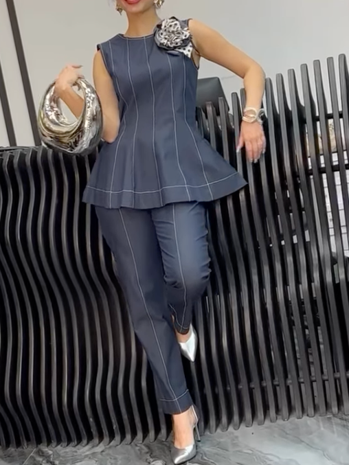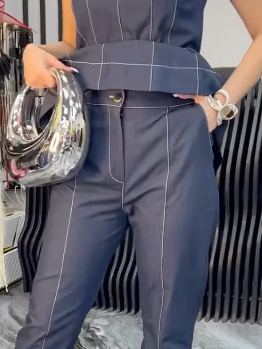 Fitted style, relaxed hem. Features a chic brooch detail. Effortlessly stylish, perfect for urban looks.