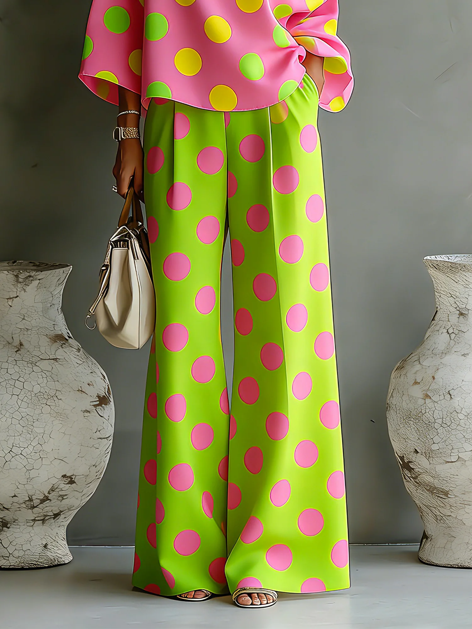 Vacation Polka Dots Printing Wide Leg Pants