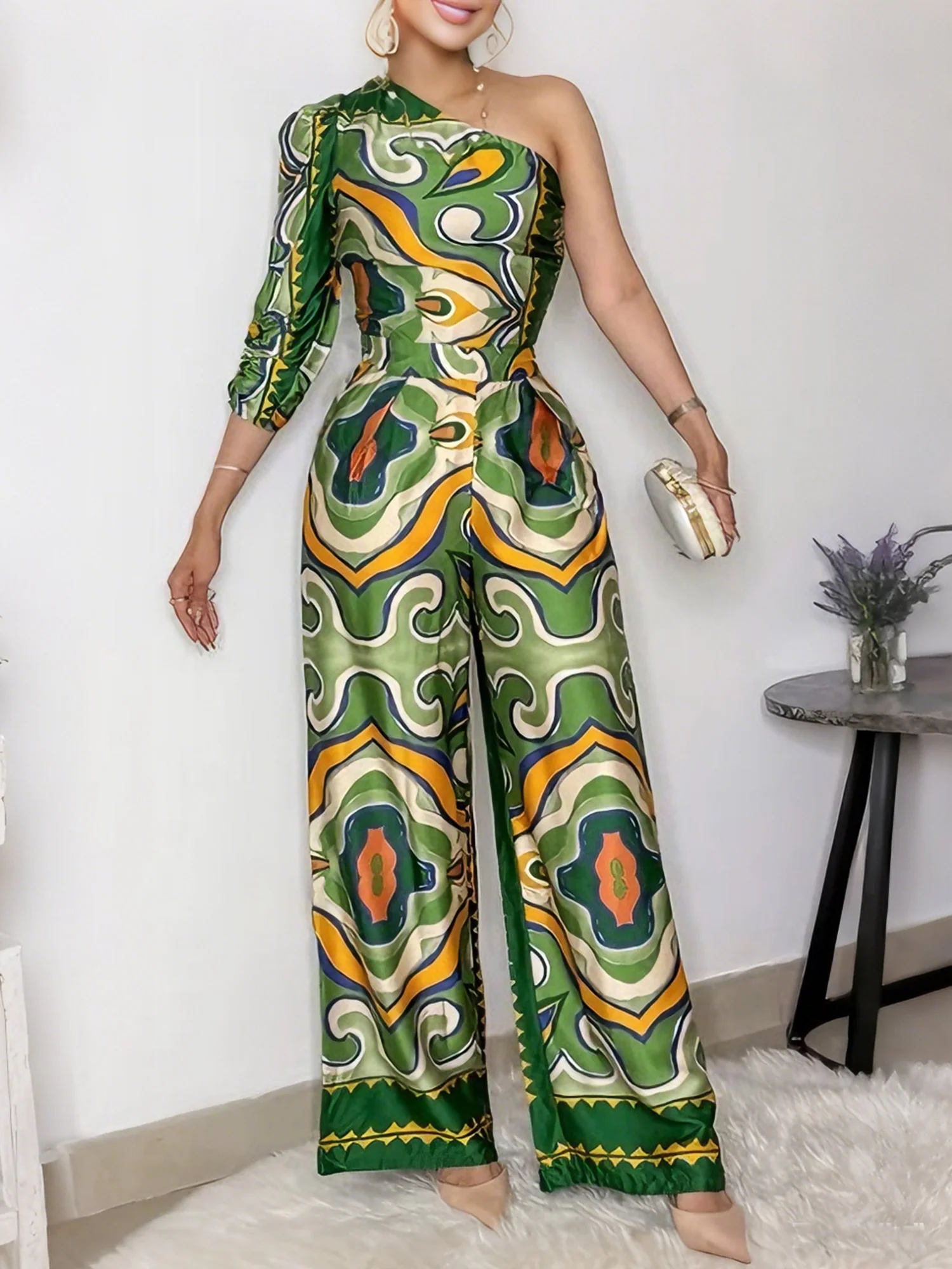 Vacation  Printing Chevron One Shoulder Jumpsuit